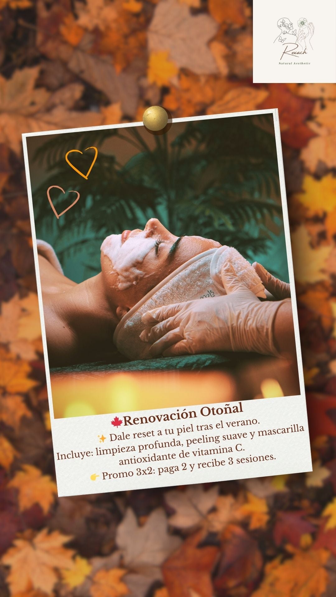 Devuélvele vida a tu piel después del verano. Este tratamiento combina limpieza profunda, peeling químico suave y una mascarilla antioxidante de vitamina C para eliminar células muertas, atenuar manchas solares y devolver luminosidad al rostro.
